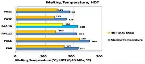3. PA610熔融溫度和熱變形溫度較高